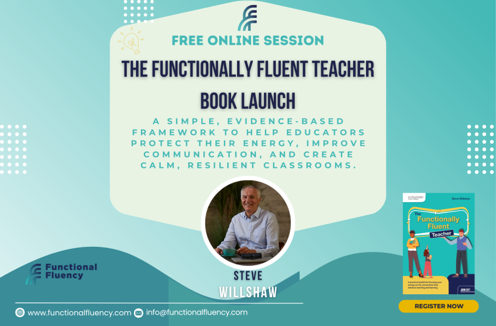 Join UK TIFF© Provider – Steve Willshaw – for the free online launch of The Functionally Fluent Teacher to discover how teachers can protect their energy and transform their classroom dynamics. We will explore practical, high-impact shifts in communication that build relational agency, helping you and your staff manage the emotional weight of teaching without burning out.